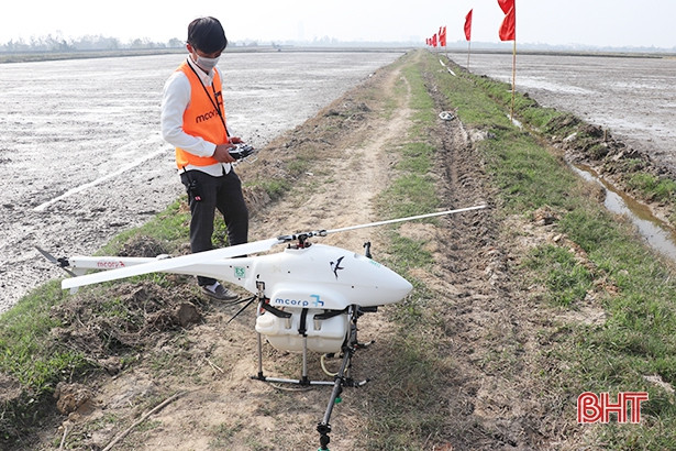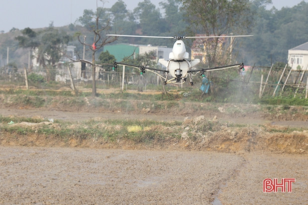(Baohatinh.vn) – Hai chiếc máy bay không người lái của Công ty MCorp (Hà Nội) vừa trình diễn khả năng phun thuốc trừ cỏ lúa trên diện tích 10ha tại thôn Hà Thanh, xã Tượng Sơn (Thạch Hà, Hà Tĩnh). Chiều 23/1, Phòng Nông nghiệp và Phát triển nông thôn